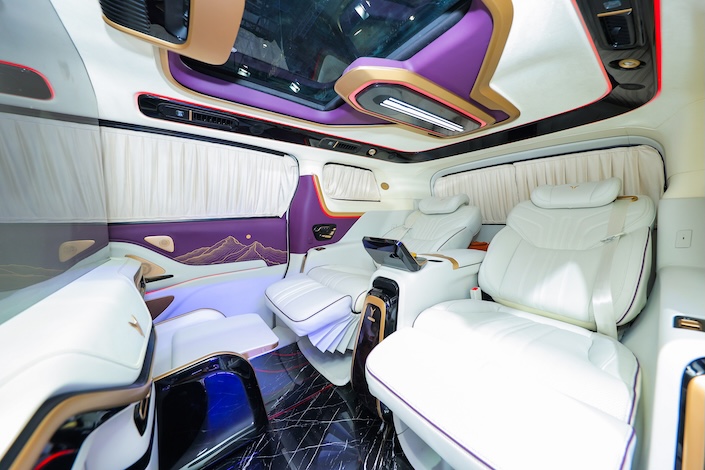 岚图梦想家山河外观采用全新“皓月紫云”双色车身,搭配20英寸星漩轮毂彰显豪华气场;星光环抱座舱充满科技豪华感,为用户带来极致舒享体验。进入车内,二排采用真零重力座椅,一键开启通风加热按摩,让用户释放身心压力;车内还特别设置了中岛式电动鞋履仓,需要换鞋时,一键电动移出并升起脚托;配备50英寸智能投影,实现商务、娱乐场景自由切换。此外,岚图梦想家山河还配备情景化隐私窗帘、全隔断智慧云幕,一键启动,后排乘客即刻拥有专属私密空间,既可小憩也可进行商务洽谈,充分满足高端商务人士的隐私性需求。