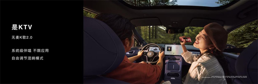 娱乐场景方面,尚界H5配备了无麦K歌2.0系统,通过系统级伴唱功能打造移动娱乐空间。HUAWEI MagLink车载屏幕互联技术支持双屏独立娱乐显示以及前后排屏幕协同创作,使座舱随时可变身移动影院或创意画室,充分满足家庭成员间的互动娱乐需求。