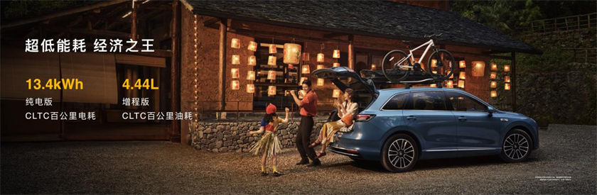 在能耗经济性上,尚界H5提供纯电与增程双动力选择,以满足不同用户需求:纯电版车型搭载80度大容量电池包,CLTC综合工况续航里程达655km,百公里电耗低至13.4kWh;增程版车型综合续航里程高达1360km,纯电续航达235km,CLTC综合工况百公里油耗仅为4.44L,完美兼顾了长续航与低能耗。车辆还支持6kW大功率对外放电功能,防水等级达到IP54,可化身移动充电宝,丰富露营、野餐等户外用电场景。