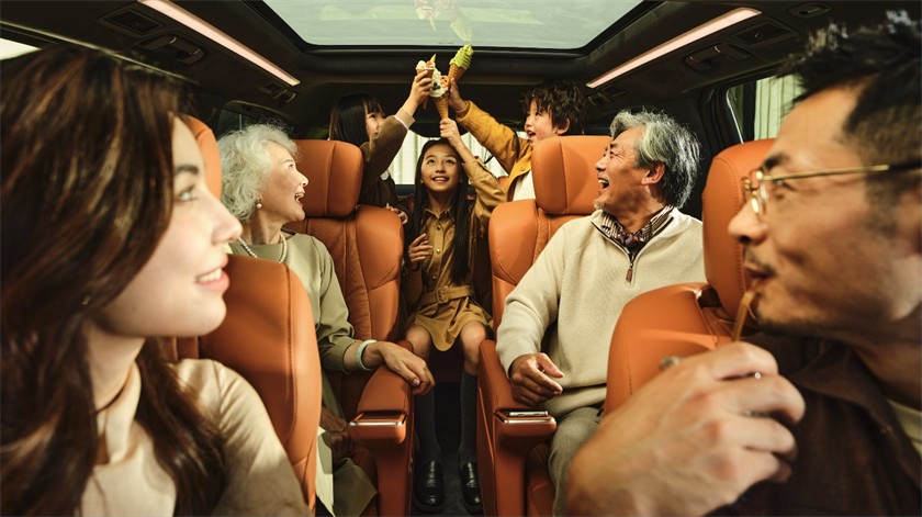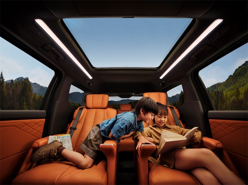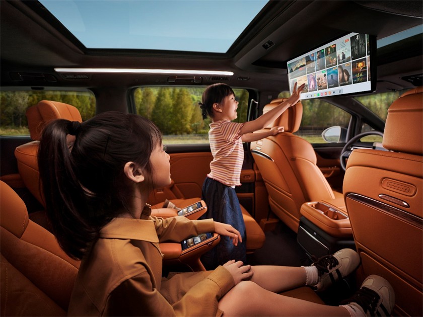 从数字化到数智化,至境世家采用高通最新的SA8775P芯片,拥有高达72TOPS的AI算力,并通过创新打造行业领先的8屏数字空间,为全家带来沉浸式智能娱乐体验。二排配备了同级唯一的双5.5吋智慧移动管家屏,可让后舱乘客对全车舒适和娱乐功能一屏掌控。此外,至境世家还搭载AI大模型语音助手,融合文心一言、豆包、Deepseek R1三大AI模型,能够提供涵盖搜索、创作、绘画等多领域的人工智能服务,覆盖车控、系统控制、导航在内的700余种全场景指令,并提供情绪陪聊和AI绘画等服务,让移动的家更有温度。