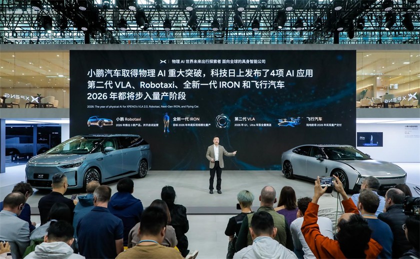 在广州车展上,小鹏汽车重申了其全新的品牌定位——“物理AI世界的出行探索者,面向全球的具身智能公司”。在近期的“2025科技日”上,小鹏汽车分享了在物理AI领域取得的突破性进展,并发布了4项AI应用,包括第二代VLA、Robotaxi、全新一代IRON和飞行汽车两种体,与全球鹏友共同见证了物理AI技术领域的涌现时刻。更为重要的是,这些应用都将在2026年进入量产阶段,加速实现科技平权。