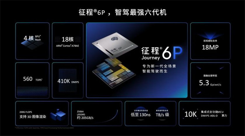 征程6P作为当前可获得的辅助驾驶最强计算方案之一,以高达560TOPS的算力实现代际性能跃迁,同时搭载了专为智能汽车的大脑而生的BPU纳什架构,能让智能驾驶计算具有针对性,让计算更有效,可高效支撑 Transformer、BEV 等大参数模型的实时推理。