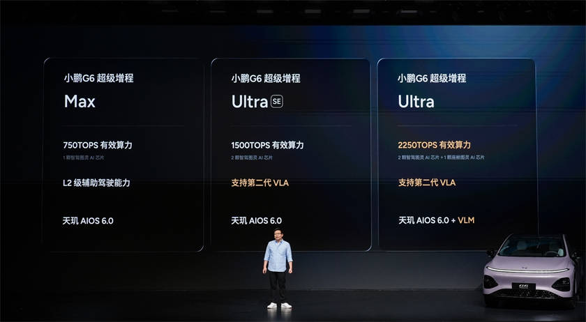 (2026年3月6日,广州)今日,小鹏汽车举行小鹏G6超级增程上市发布会,新车定位六项全能AI增程SUV,以“六项全能 一步到位”为核心,凭借同级综合续航第一、同级补能速度第一、同级车端有效算力第一、同级最强底盘系统、同级最强主动安全和同级得房率第一的六大核心优势,打造真正满足用户全场景需求的国民车。本次发布小鹏G6超级增程1704 Max,官方指导价为18.68万元,用户可选装两个智能升级包,加购12,000元升级为Ultra SE版本、加购20,000元升级为Ultra版本。