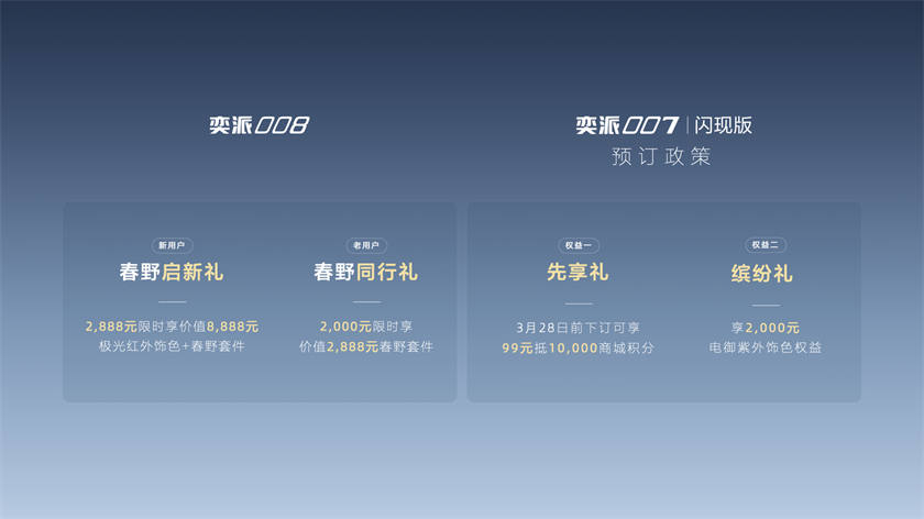 适配家庭百变出行场景的“大舒适家”奕派008,始终致力满足中国主流家庭对高品质出行的多元想象,正式推出用户共创全新车色——“极光红”。新车色以红色极光为灵感,经过多次车漆调校,兼具奢雅通透的视觉质感与升级耐磨的漆面工艺,实现美学与品质双重进阶。为进一步提升家庭出行的舒适与便捷,奕派 008 推出涵盖车顶横杆行李架、固定侧踏板、放电插排三大核心配置的“春野套件”,并同步释放双重限时购车权益:新用户下订极光红外饰色绑定春野套件限时先享价2888元;老用户可在APP下订春野套件,限时回馈价2000元,助力用户轻松开启春日美好出行。
