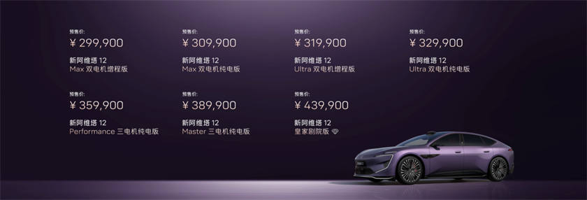 2026年3月20日(重庆),新阿维塔12预售发布会在重庆金融会展中心举办。新车提供纯电与增程双动力,共推出7个车型版本,预售价29.99万元-43.99万元,预售期间下订可享 2,000元意向金,抵扣5,000 元大定定金的活动。作为华为乾崑与阿维塔战略合作2.0首款车型,新阿维塔12全系标配华为乾崑全球量产最高896线激光雷达及太行分布式电驱;纯电车型标配98度宁德麒麟电池,增程车型标配52度骁遥增混电池。凭借“性能、驾控、智能、安全与服务”五大超越性进化,新车重新定义50万内豪华轿车标准。