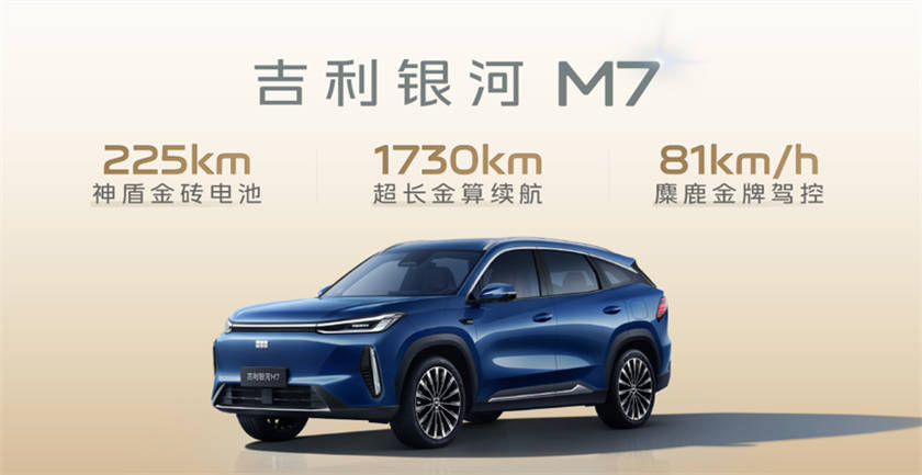 4月9日,定位“主流精品电混SUV引领者”的吉利银河M7正式开启全球预售,共推出3款配置车型,预售价区间为13.98万元至15.68万元。新车首发搭载神盾金砖电池,依托GEA Evo全球智能新能源旗舰架构,以225km纯电续航、1730km综合续航、81km/h麋鹿测试成绩三大技术尖点,刷新主流电混SUV价值标杆。