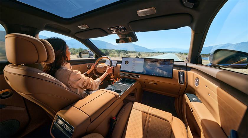 座舱内,AI灵犀智舱2.0以5nm高通骁龙8295P芯片为核心,行业首发液态玻璃光感交互UI与S2S实时语音大模型,Carmind Pro智能体支持模糊语义识别与影音车控服务直达,让座舱真正拥有思考能力。30吋6K寰宇一体屏与后排生态屏构成同级唯一的五屏联动。“小奇畅聊”拥有6大人格化角色,任务魔方可调用全车15个模块、100余项原子服务,让每位用户都能DIY属于自己的“千人万车”。灵犀智舱不再是冰冷的工具,而是有温度的飞行管家。