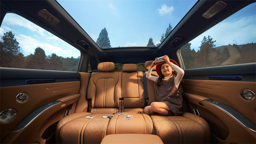 陆地头等舱,黄金空间尺寸。星途EX7以车长4988mm、轴距3000mm的真C级532尺寸打造出3.45m³的同级第一舱内空间,78%得房率。同级第一40处储物空间,二排腿部空间970mm,支持双大床模式。全车座椅标配通风、加热与SPA级按摩,行业首发自愈亲肤皮;9.2L智能冷暖冰箱(温域-18℃~50℃)、256色星河流光氛围灯,共同营造百万级豪车氛围。此外,ENC主动降噪技术带来航空级静谧座舱——无论是全家出游还是露营过夜,星途EX7都能装下对美好生活的所有期待。