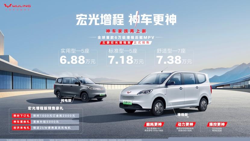 国民神车加码增程,五菱宏光增程版6.88万元开启预售